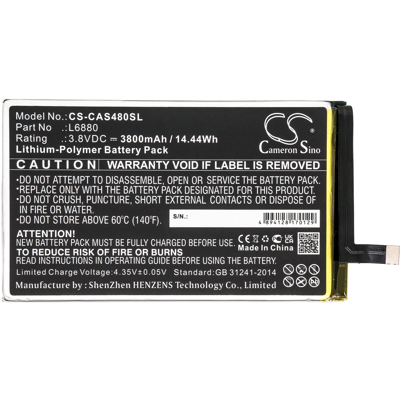 Battery for CAT S48C L6880 3.8V Li-Polymer 3800mAh / 14.44Wh