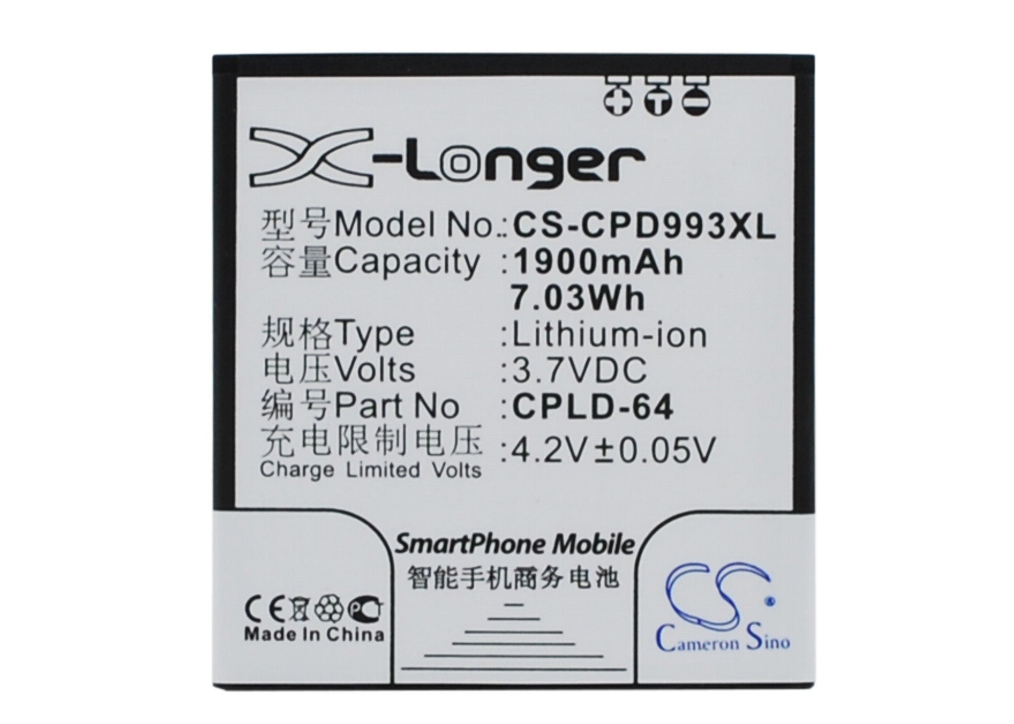 Battery for Coolpad 9930 CPLD-64 3.7V Li-ion 1900mAh / 7.03Wh