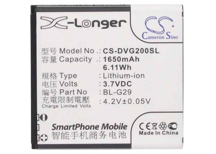 Battery for DOOV IEva D2 BL-G29 3.7V Li-ion 1650mAh / 6.11Wh