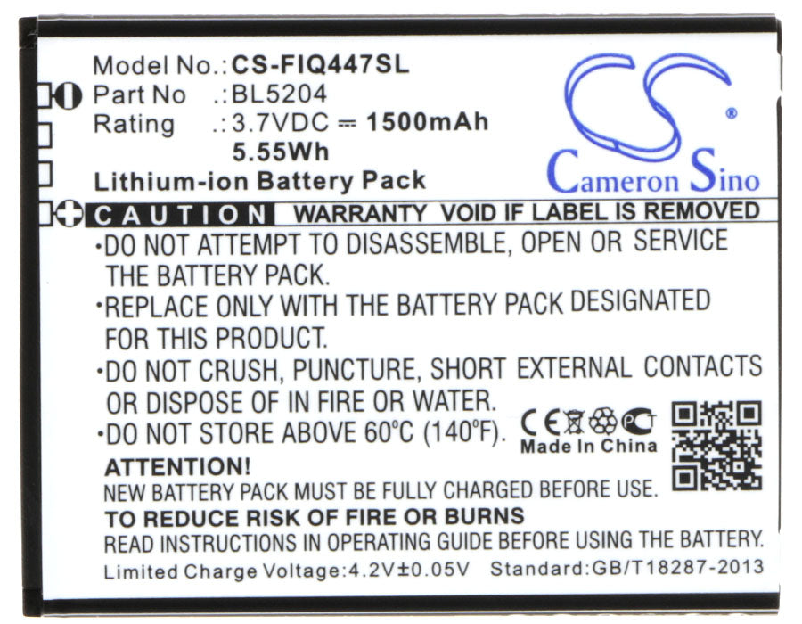 Battery for Fly IQ447 BL5204 3.7V Li-ion 1500mAh / 5.55Wh