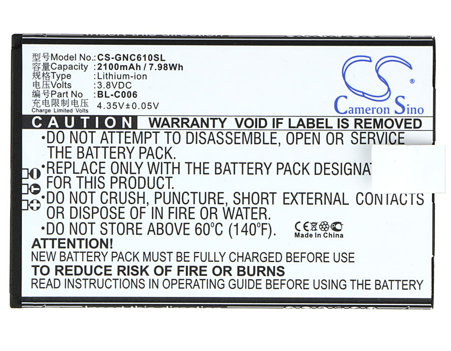 Battery for GIONEE C610 BL-C006 3.8V Li-ion 2100mAh / 7.98Wh