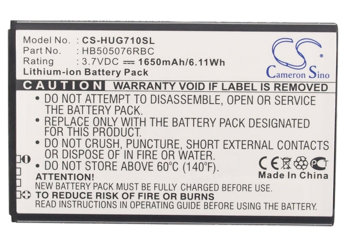 Battery for Huawei Ascend G700 HB505076RBC 3.7V Li-ion 1650mAh / 6.11Wh