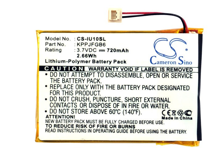 Battery for iRiver Clix 4GB KPPJFGB6 3.7V Li-Polymer 720mAh