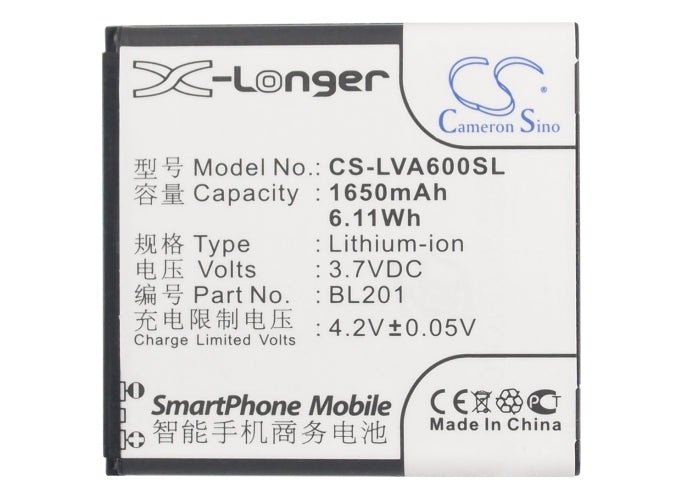 Battery for Lenovo A60 plus BL201 3.7V Li-ion 1650mAh / 6.11Wh