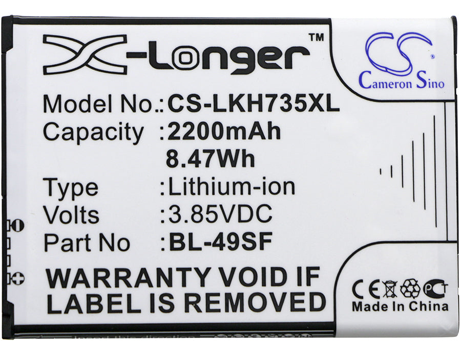 Battery for LG G4 Beat BL-49SF, EAC92919001 3.85V Li-ion 2200mAh / 8.47Wh