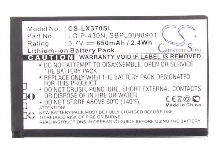 Battery for LG Gentle LGIP-430N, SBPL0098901 3.7V Li-ion 650mAh