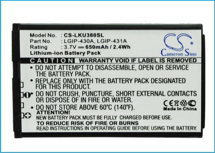 Battery for LG Invision LGIP-430A, LGIP-431A, SBPL0083509, SBPL0089901, SBPL0092