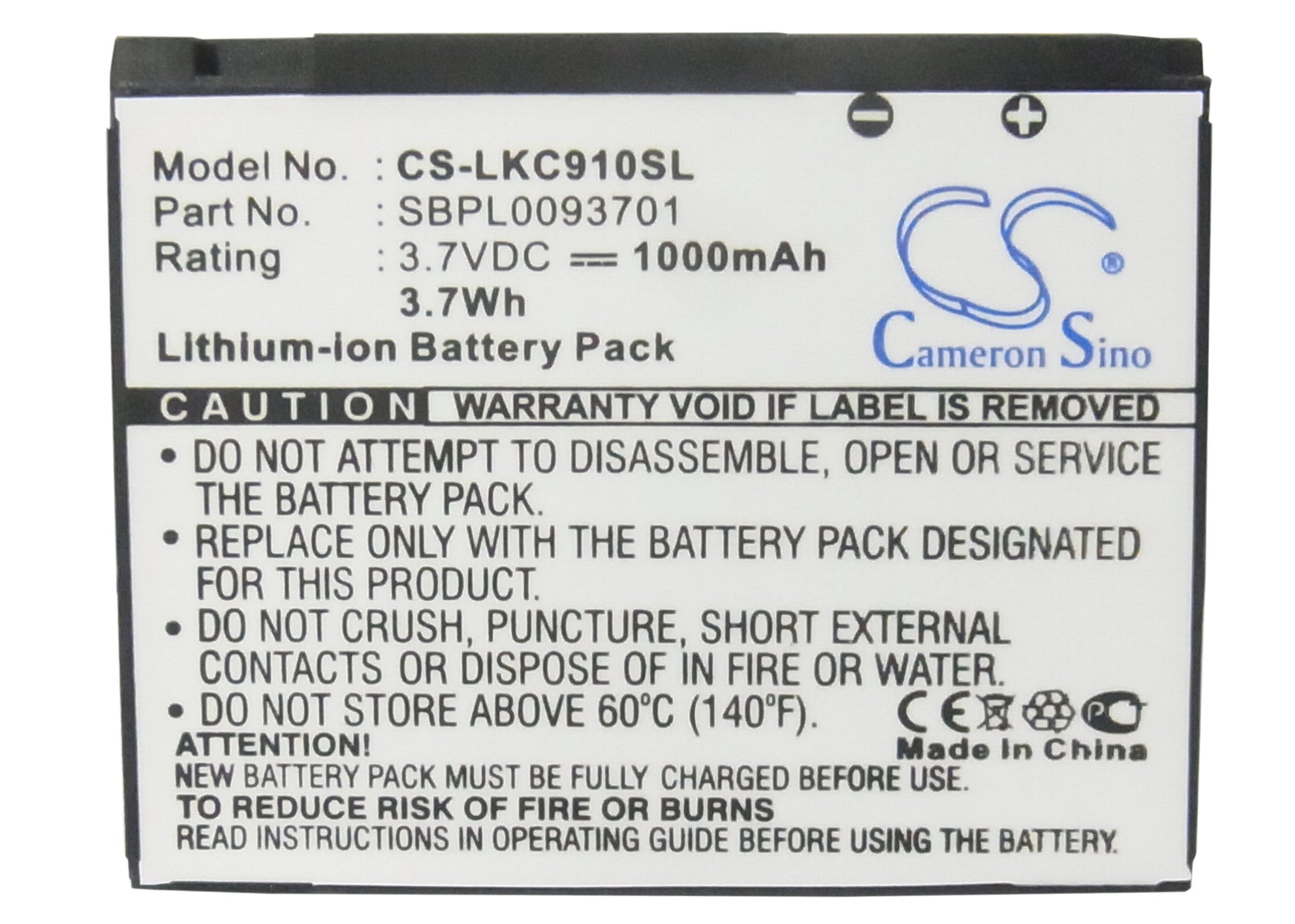 Battery for LG KC910 SBPL0093701 3.7V Li-ion 1000mAh