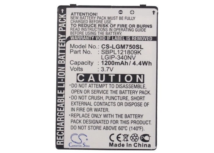 Battery for LG Octane LGIP-340NV, SBPL121809K, SBPP0026903, SBPP0027503 3.7V Li-