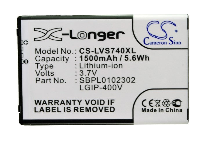 Battery for LG VS740 LGIP-400V, SBPL0102302, SBPP0027402 3.7V Li-ion 1500mAh / 5