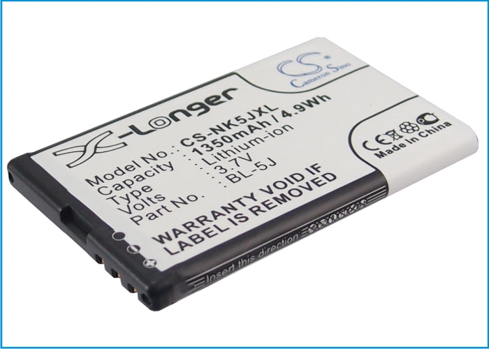 Battery for Nokia Lumia 525 BL-5J 3.7V Li-ion 1350mAh / 5.00Wh