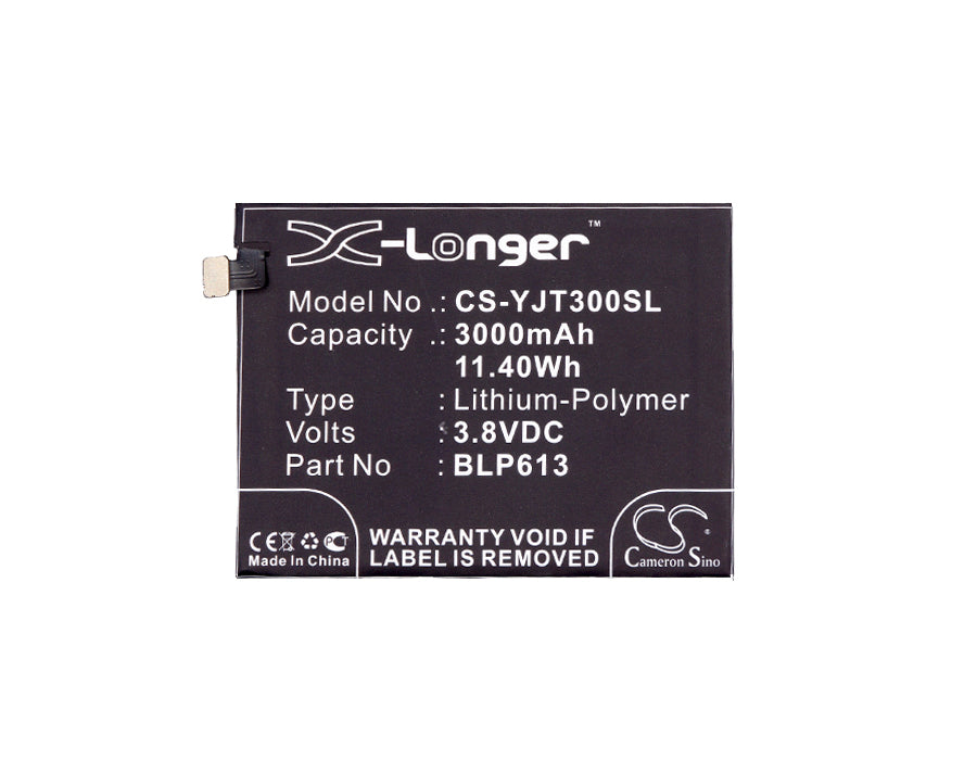 Battery for Oneplus A3003 BLP613 3.8V Li-Polymer 3000mAh / 11.40Wh