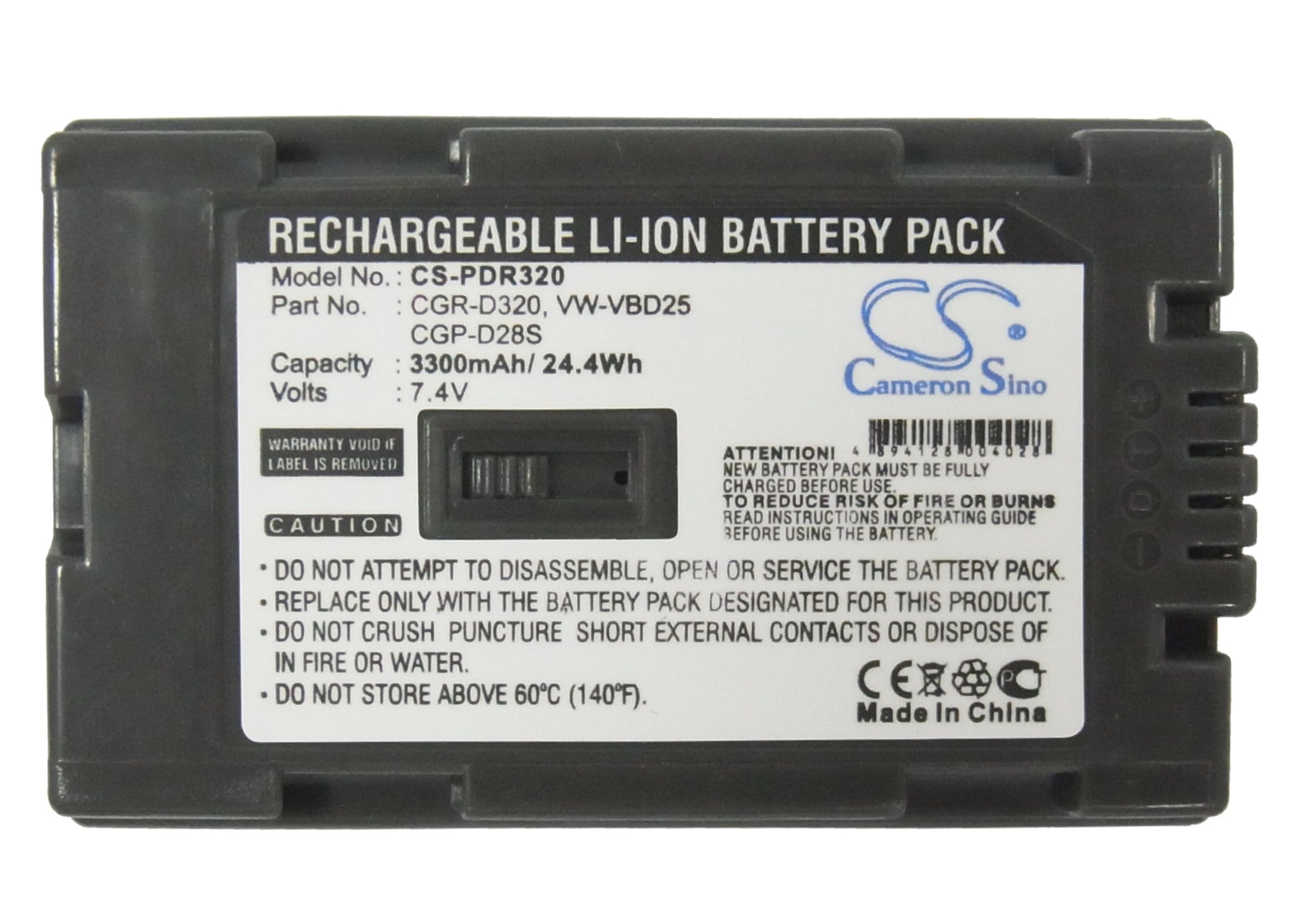 Battery for Panasonic NV-DS15 CGP-D28S, CGR-D320, VW-VBD25 7.4V Li-ion 3300mAh