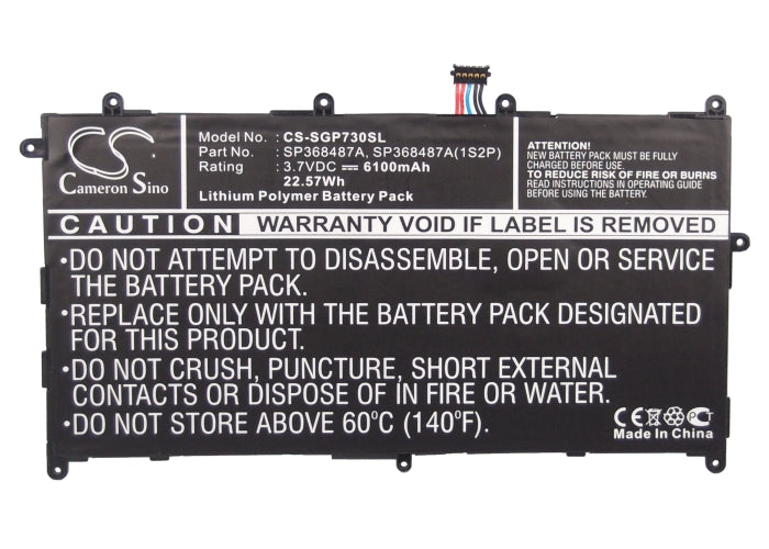 Battery for Samsung Galaxy Tab 8.9 SP368487A, SP368487A(1S2P) 3.7V Li-Polymer 61