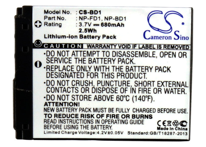 Battery for Sony Cyber-shot DSC-G3 NP-BD1, NP-FD1 3.7V Li-ion 680mAh