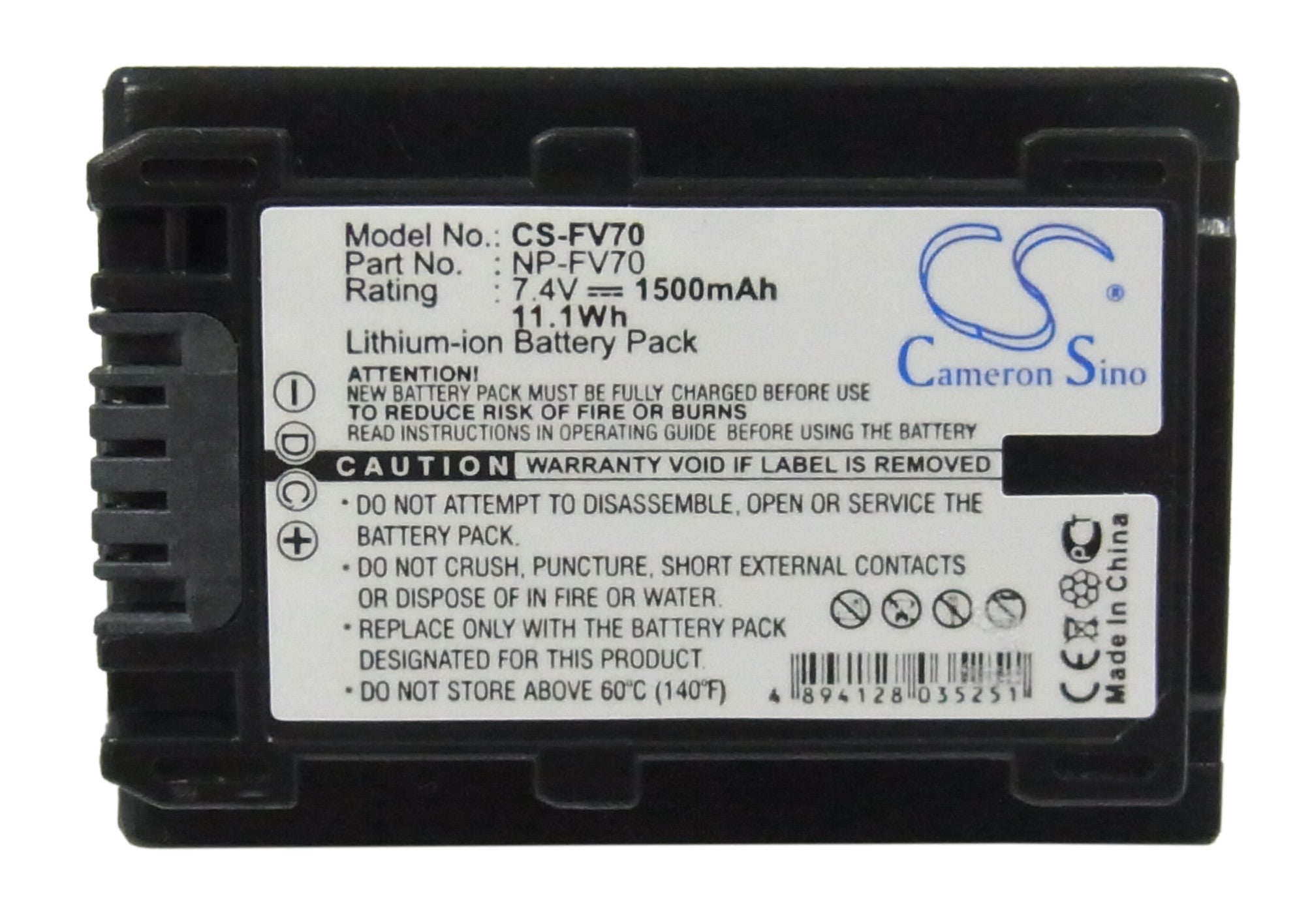 Battery for Sony DCR-SR75E NP-FV70 7.4V Li-ion 1500mAh / 11.1Wh