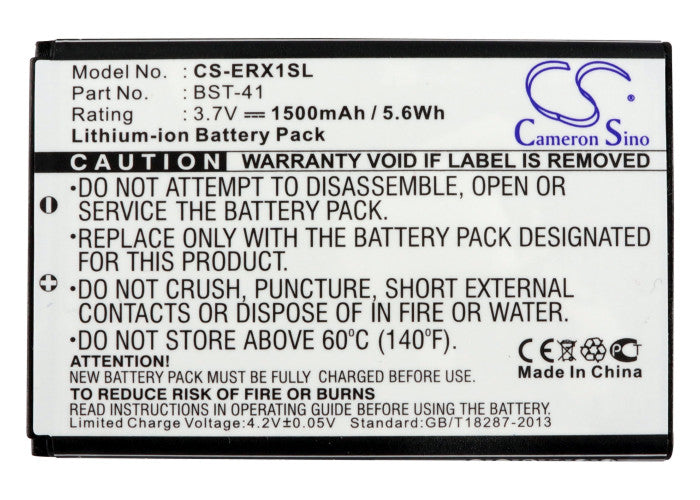 Battery for Sony Ericsson A8 BST-41 3.7V Li-ion 1500mAh / 5.6Wh