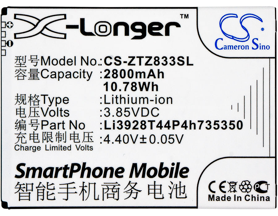 Battery for ZTE Avid Trio Li3928T44P4h735350 3.85V Li-ion 2800mAh / 10.78Wh